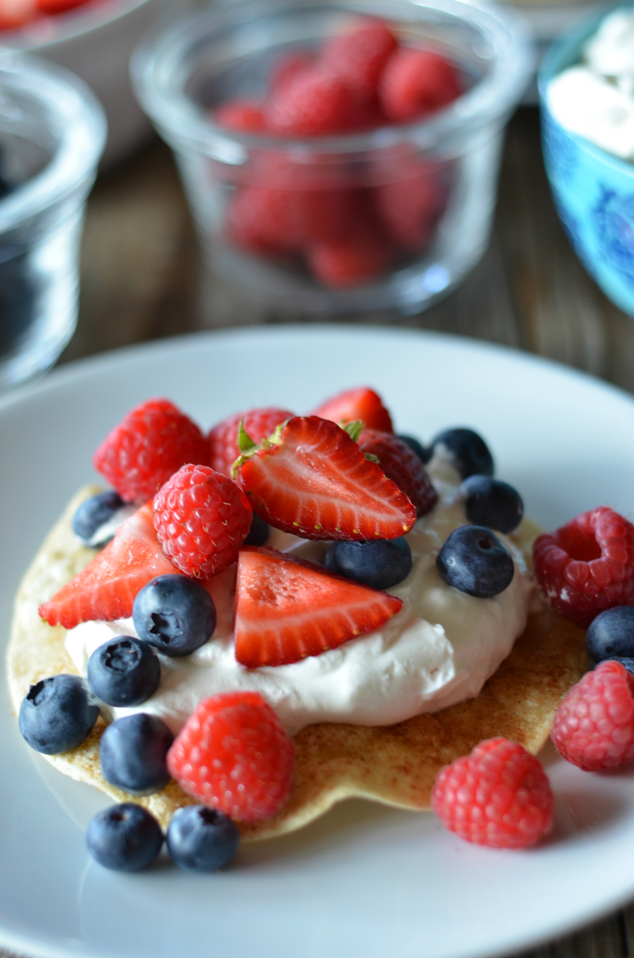 Baked cinnamon-sugar corn tortillas, a lightened up version of whipped cream with plain Greek yogurt and fresh berries make for a winning combo and what has turned out to be one of my favorite Taco Tuesday recipes I’ve made in a long time.