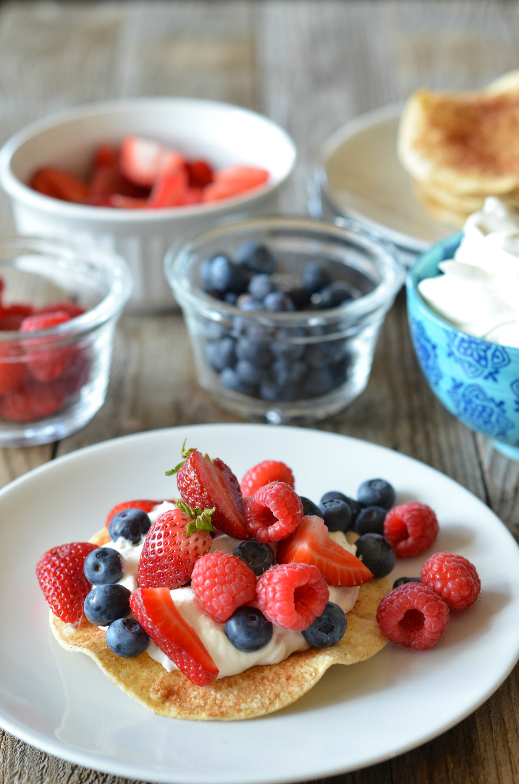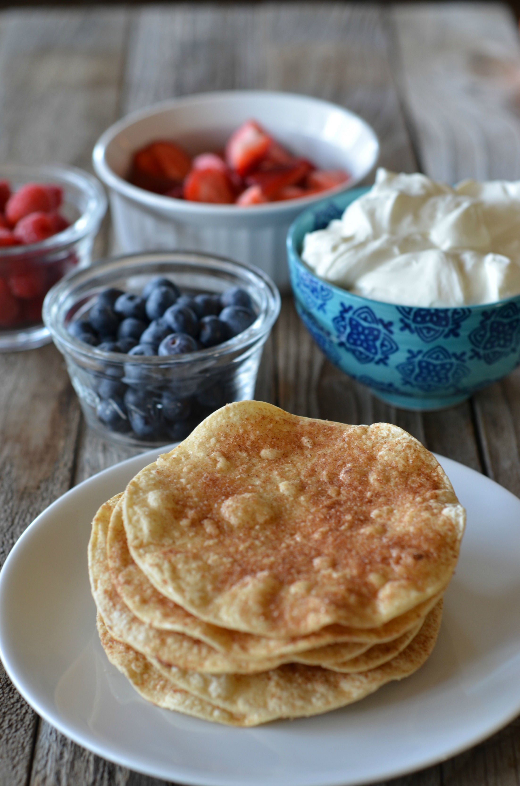- To serve, divide the whipped cream mixture among the cooled tortillas and top with fresh berries.