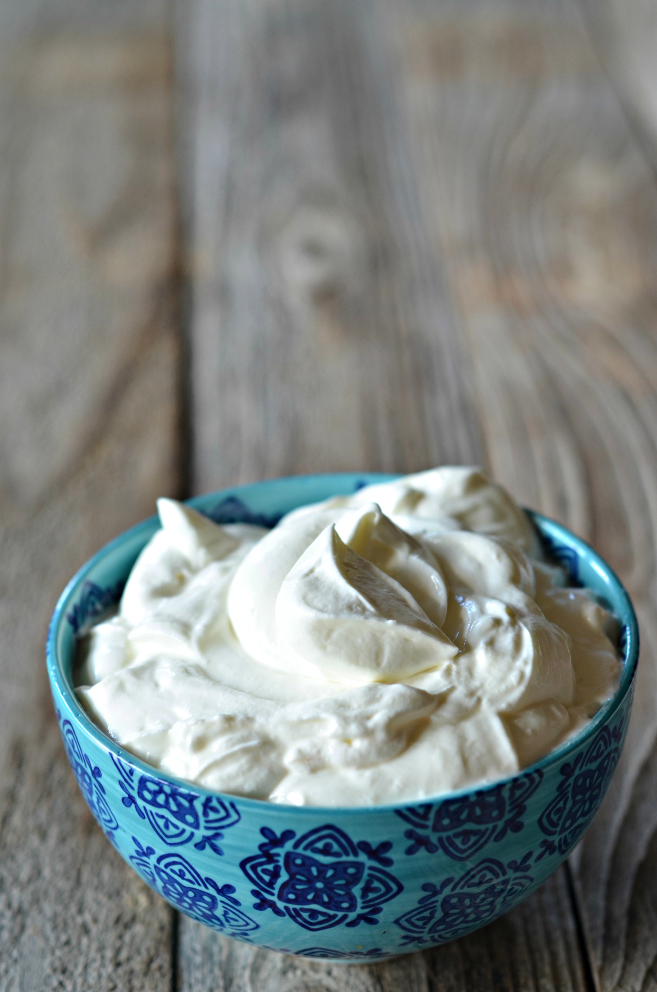 - While tortillas are cooling make the whipped cream by placing whipping cream, Greek yogurt and 3 tablespoons sugar in a large bowl. Using a hand mixer with the whisk attachment, beat on medium-high until airy and thick. About 5 minutes.