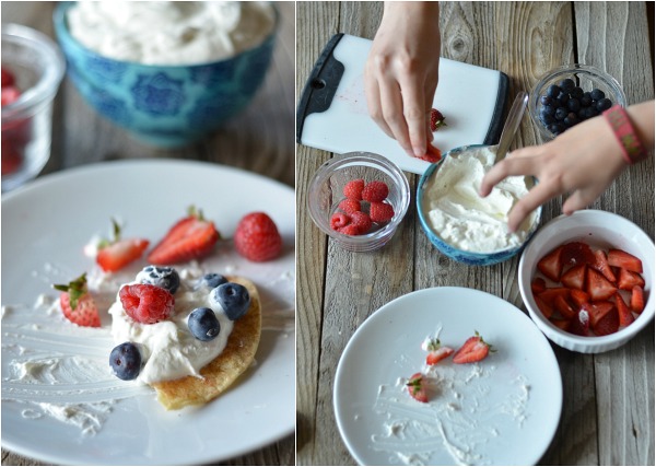 The whipped cream is my favorite part of these tacos. It’s whipping cream and Greek yogurt whipped together with just a touch of sugar making it creaming, tart and sweet all at the same time. Over the crispy, cinnamon-sugar laden tortilla, it’s truly a winning match. I left the berries alone, letting them shine as they are. I’d just finished photographing when the kids and my babysitter walked into the house yesterday. I was quickly surrounded and my lovely little vultures dug in. Nothing makes me happier than seeing others enjoy my food. It’s why I cook.