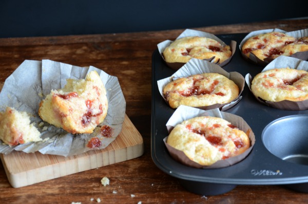 I made these a few weeks ago with homemade rhubarb-ginger jam. SO DELICIOUS! The texture and taste of the creamy muffins won me over. Will be making these again soon with (hopefully homemade) strawberry jam!