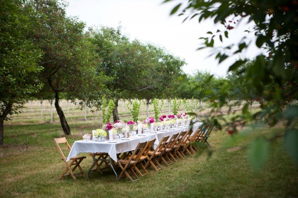 If touring cherry orchards and sipping cherry infused martinis wasn’t enough, dinner was nothing short of magical. I mean it, you guys. Dinner was magical. The table set up in the middle of the orchard was breathtaking. It was intimate, homey and without a doubt, the most gorgeous table setting I have ever seen. For reals you guys, the detail, the backdrop, the colors… every bit of it was unbelievable.