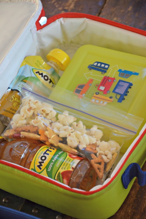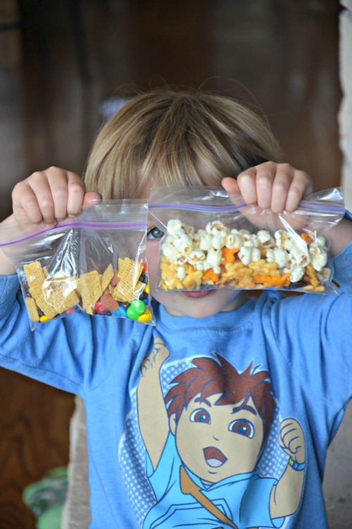 Our lunches vary week to week but some things are constant: it’s always well rounded. I like to include some protein, good carbohydrates, and fruit and vegetables. Mott’s® makes it easy, peasy on moms with their 100% apple juice and Snack & Go Applesauce pouches. Because the applesauce pouches have are full of vitamin C, I feel good about adding them to the lunch boxes. They couldn’t be more convenient or easy! The kids often save 1/2 of their juice for after school since we ride our bikes to and fro. Another fun thing we’ve been doing lately is making our own trail mix. It’s something we did this summer to take on hikes or while riding our bikes. I’ve kept it going this fall and it’s been a welcome addition in the lunch box! I make it ahead and portion it out into ziplock snack size bags.
