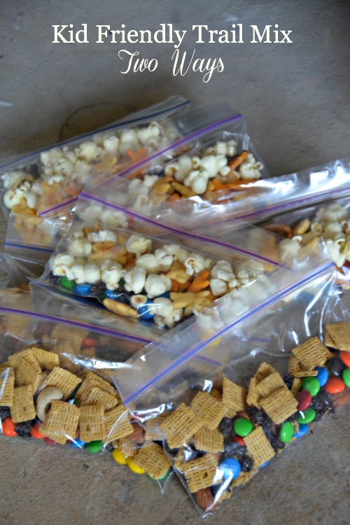 - For the popcorn trail mix we mixed white cheddar popcorn, cheddar bunnies, mini pretzels, raisins and m&m’s.